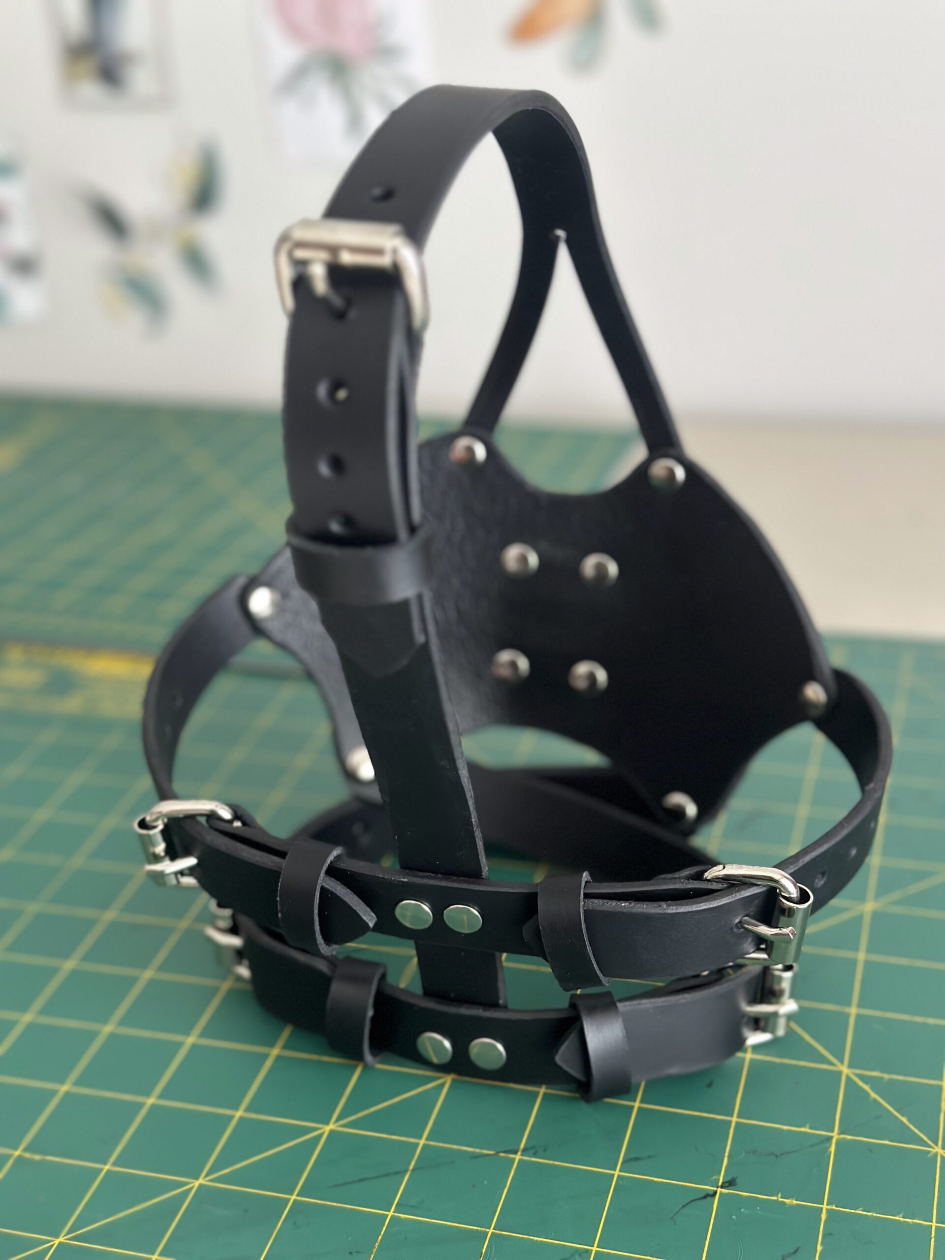 This leather muzzle gag is designed for a bold, minimalist look with a strong emphasis on form and presence. Constructed from smooth, high-quality leather, the muzzle holds its shape while offering a comfortable, secure fit against the face.